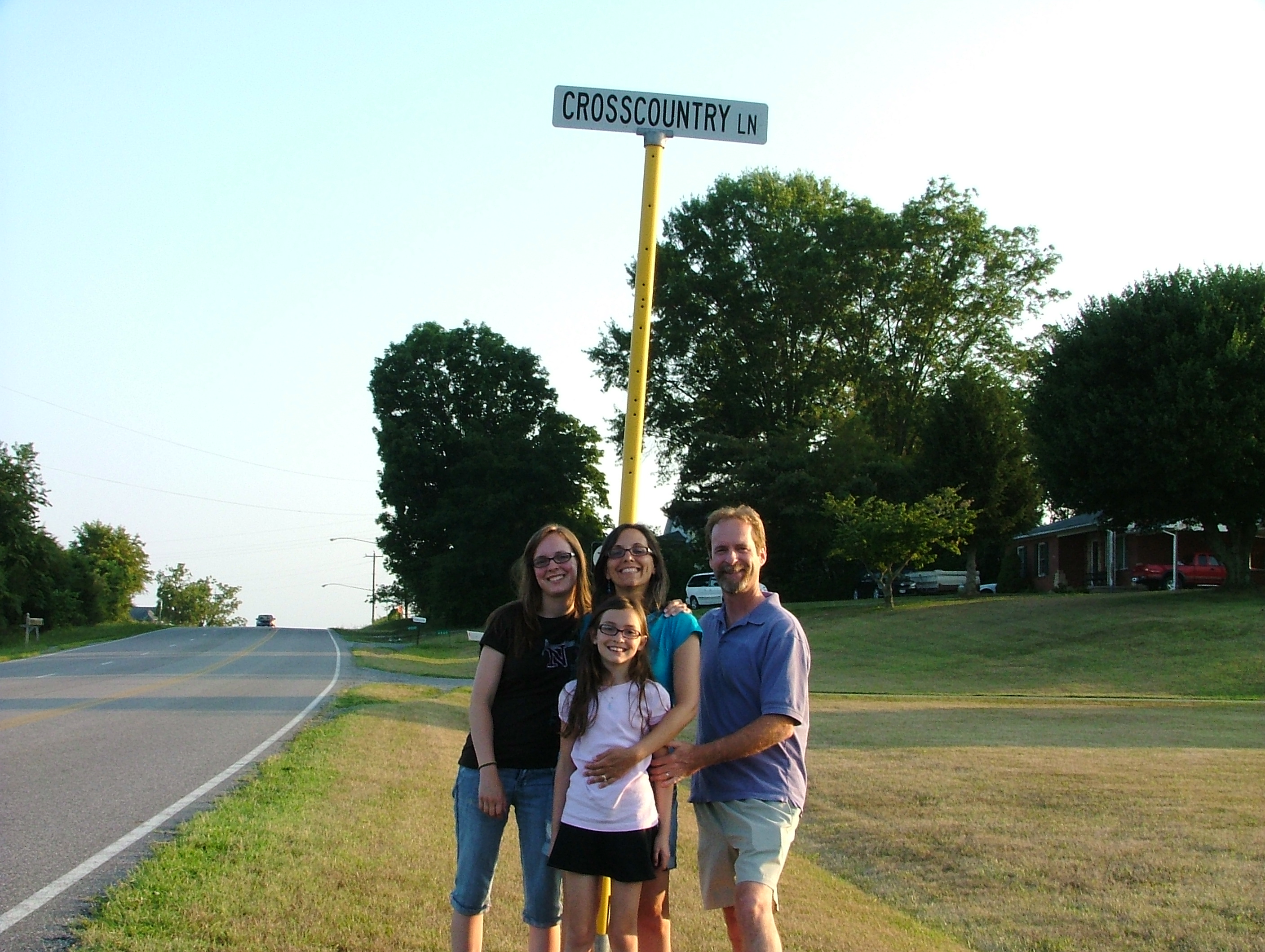 While driving through the Virginia on Wednesday, we pulled over to take our picture on a street named Cross Country Lane. I stepped out of the car and took a deep breath. “What is that smell?” I said aloud. I breathed deeper, inhaling the sweetest, freshest air I had smelled in weeks. A few more inspirations and I knew…cut grass!!! Home couldn’t be far away now!