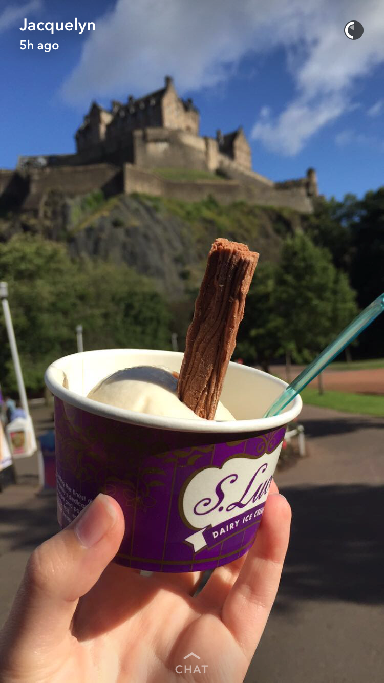 At the end of the park, we found a small carousel, but after realizing one ride cost nearly five american dollars per person, we chose ice cream instead! Guys, in Scotland, they serve ice cream with a “flake”. “What’s a flake?” you ask. Don’t worry…I had to ask, too. Well, a flake is this piece of chocolaty goodness you see right here: