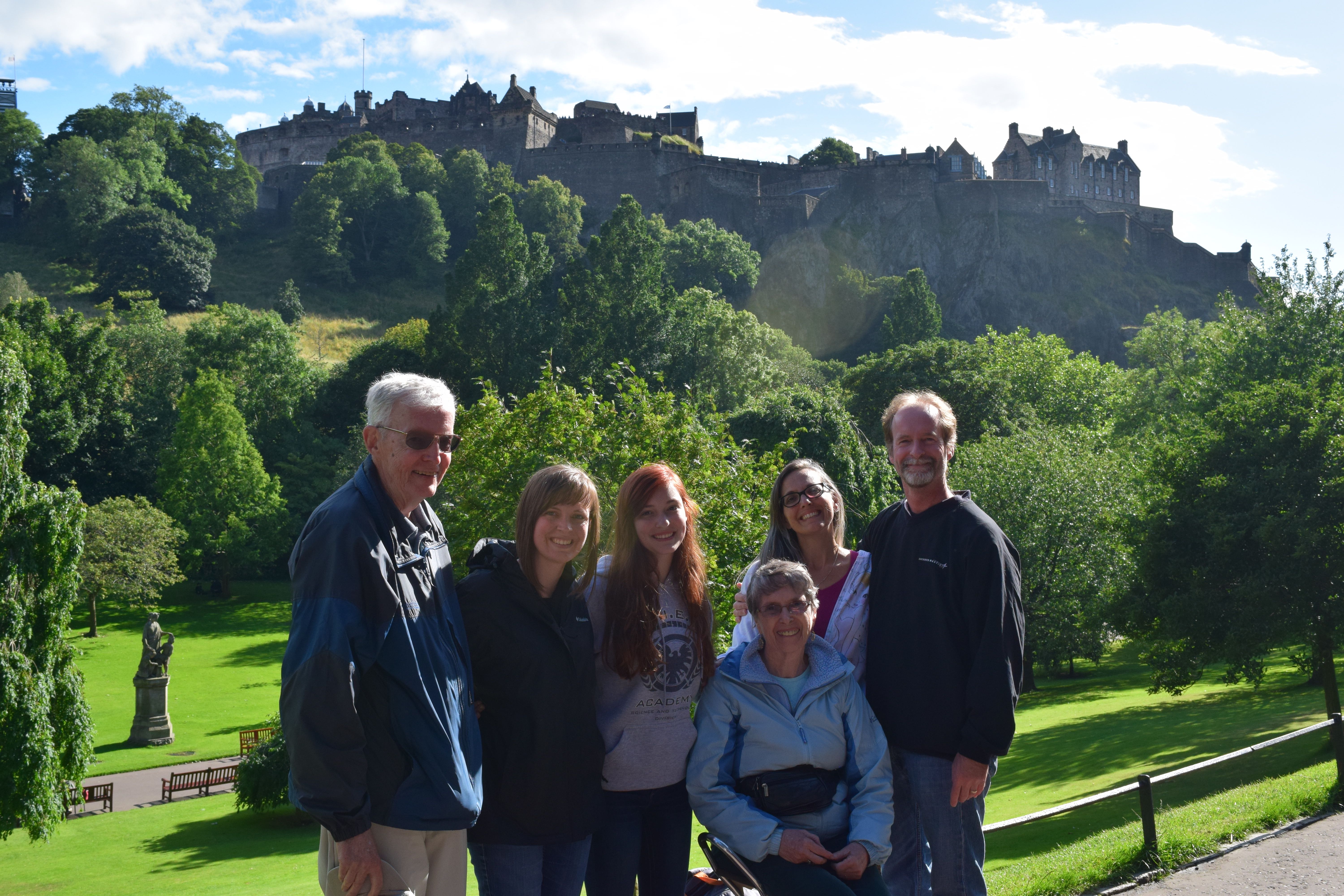 We shopped for about two hours on the Royal Mile and only traveled halfway down the hill before breaking for lunch. Here’s where it gets interesting. Because of the newly falling rain and everyone’s tired feet, we settled on taking a taxi to our restaurant. But we only found a four-seat cab, so Doug and his dad decided to walk while the ladies all rode in the taxi.