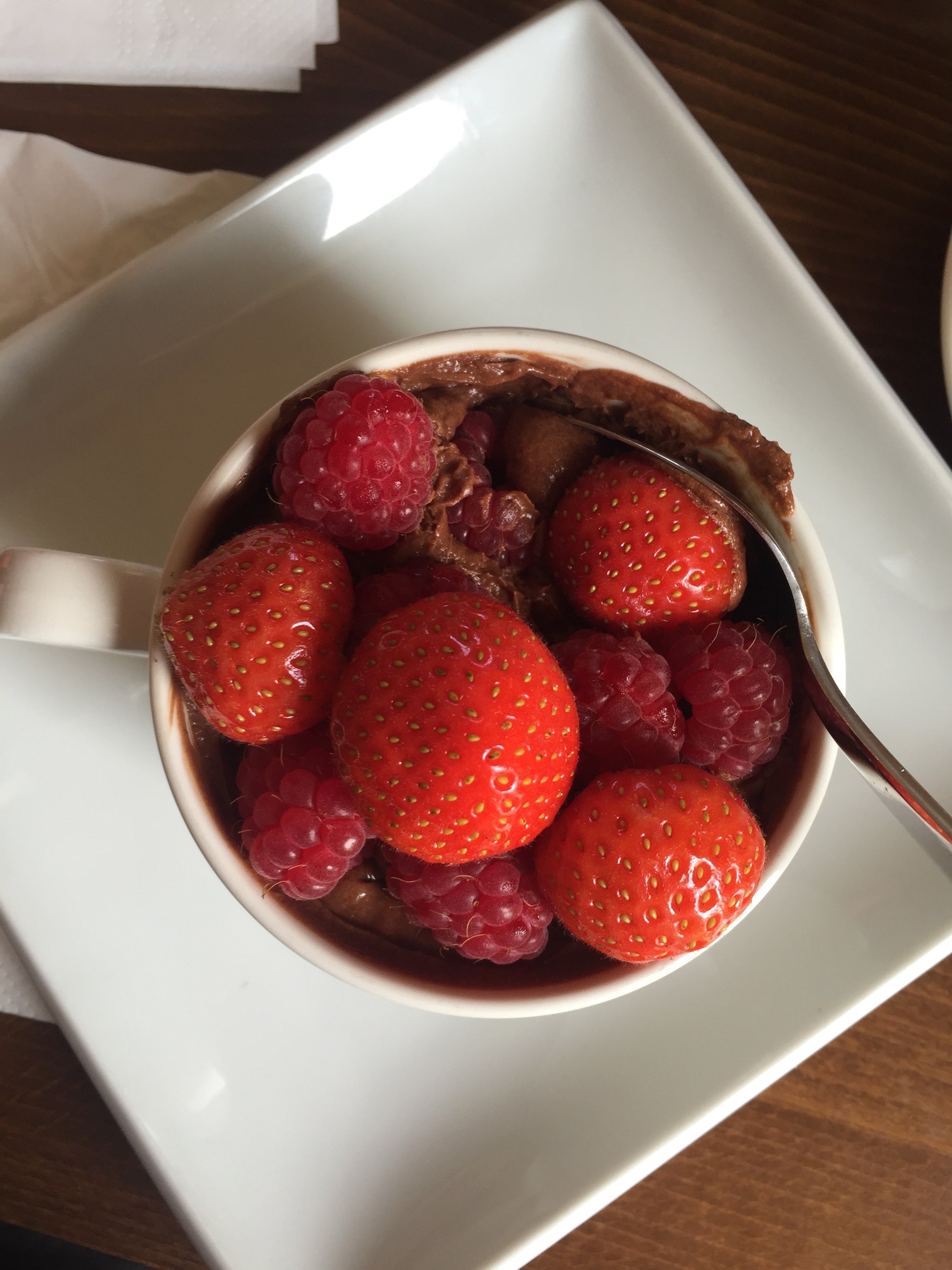 My chocolate mousse came topped with fresh berries and the mousse was both creamy and semi-sweet – just how I like it!