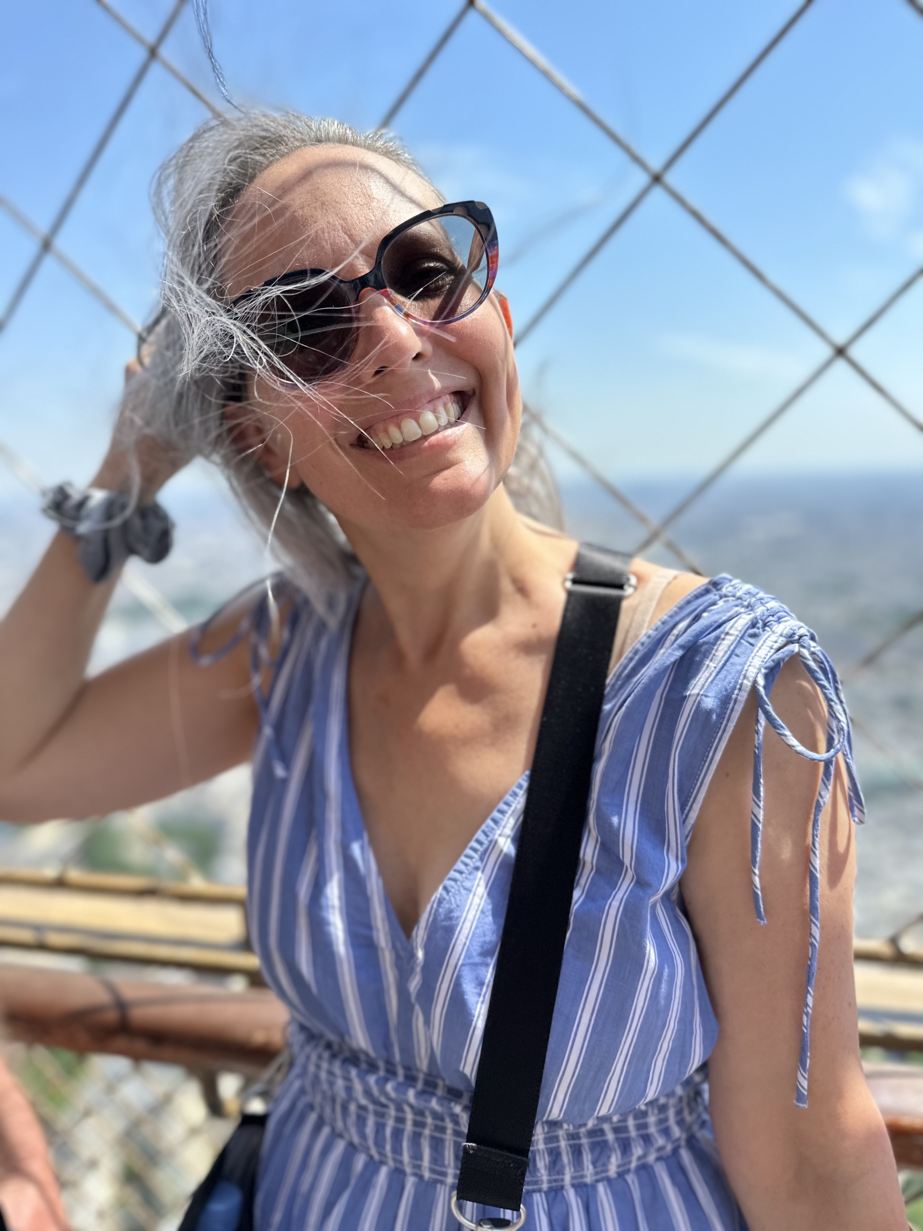 In the end, the view from the top was worth it all. The weather was perfect. The visibility, great. We took our time walking around the platform, looking out over Paris and taking photos in every direction. I didn’t even care about the crowds (and I do hate crowds) because I was standing on the top of the Eiffel Tower! Little girl who never thought she’d see the west coast of America, let alone France, who used to be afraid to fly, who never dared to dream this big….she was atop the Eiffel Tower. It felt like a fairytale. I’ll say it one more time: I was standing on the top of the Eiffel Tower in Paris, France!!!