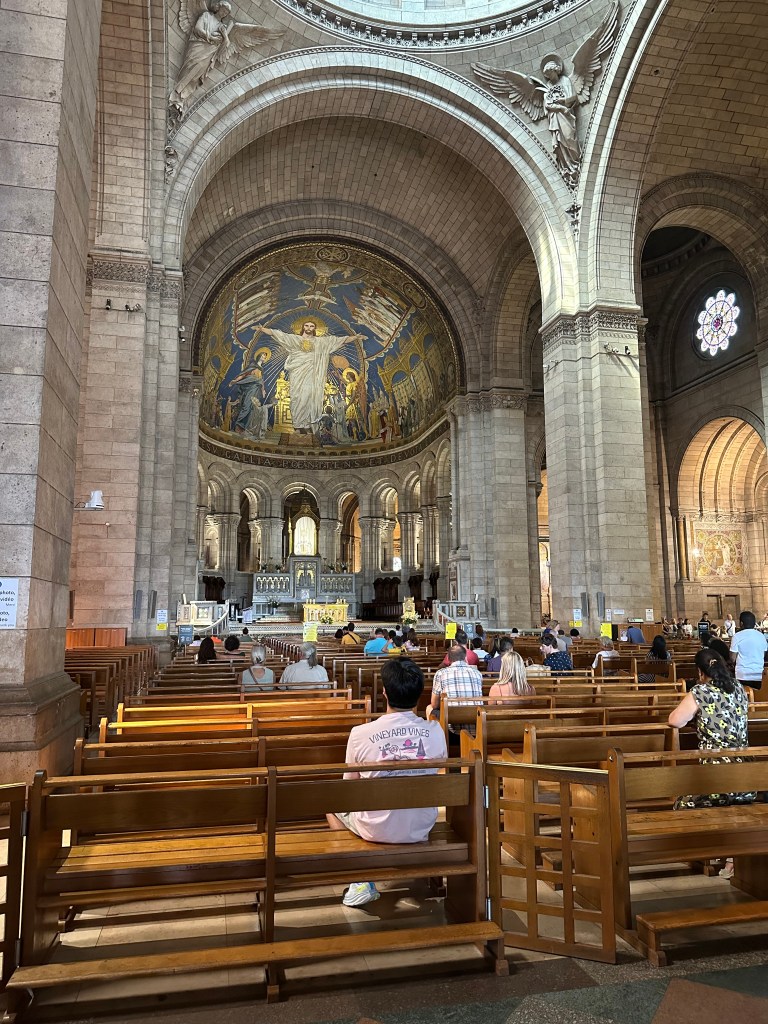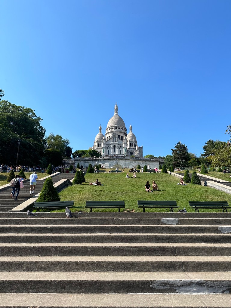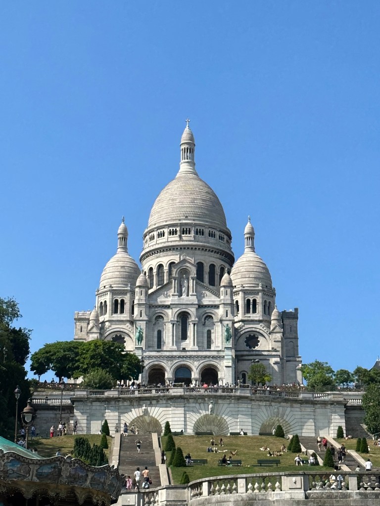 Sacre-Coeur is a sight to behold both inside and out. Inside, we took our time looking at the sculptures, art, artifacts, stained glass, and various chapels, then sat down to pray for a little while. Outside we admired the the view while listening to a violinist play everything from hymns to Ed Sheeran’s Thinking Out Loud. We also considered climbing the stairs to the dome, but when we saw that it was 300 more steps and we had to pay to climb them, we opted to spend some time on the grassy hill instead. (Don’t worry, we made sure it wasn’t going to be anyone’s “Eiffel Tower!”)