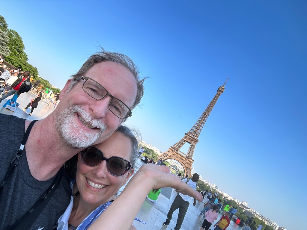 When Doug visited Paris in 1989 with his brother, David, he was 20 years old and traveling on a limited budget. With the cost for a ticket to the top of the Eiffel Tower at 12Fr (way back when they were still using francs) they settled for a ticket to the lower platform. He saved 7Fr, but he regretted that decision for the next 34 years!