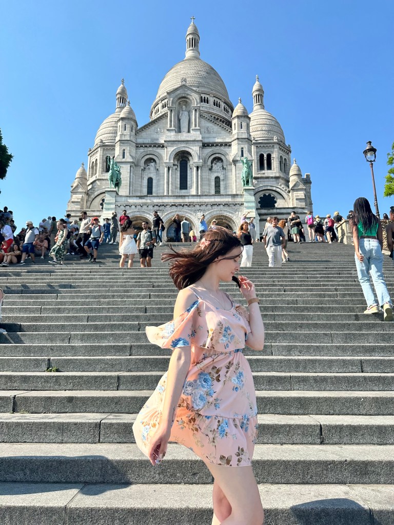 After lunch, we took the metro to Sacre-Coeur, the second most visited church in France (behind Notre-Dame de Paris) and the second highest point in the city (the Eiffel Tower being the highest). The metro only gets you so close, so we had to walk uphill through city streets to reach the base of the basilica. (The main street up the hill with all its little shops is absolutely adorable. And absolutely none of us got a photo of it.) If all that walking and climbing sounds daunting, don’t worry. Once you’re at the base of the basilica, there is a little funicular railway you can ride to the top. Our NaviGo pass even worked there!