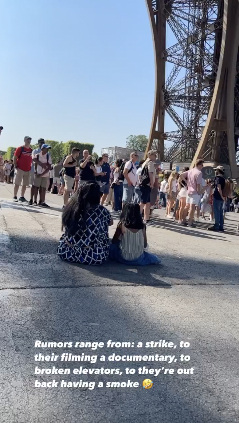 Lots of people, including Doug and I, tried talking to Eiffel Tower staff but it was almost impossible to find anyone. When we did find someone, they acted as if they didn’t speak English or pretended they suddenly got a phone call and walked away. It was almost comical. Eventually, due to timing constraints, people began to leave, including the group of British women behind us. A whole group of little kids in matching neon orange vests, presumably on a field trip, left also. It was a sad little sight, them all trailing out in two neat little rows, covered in sweat and disappointment.