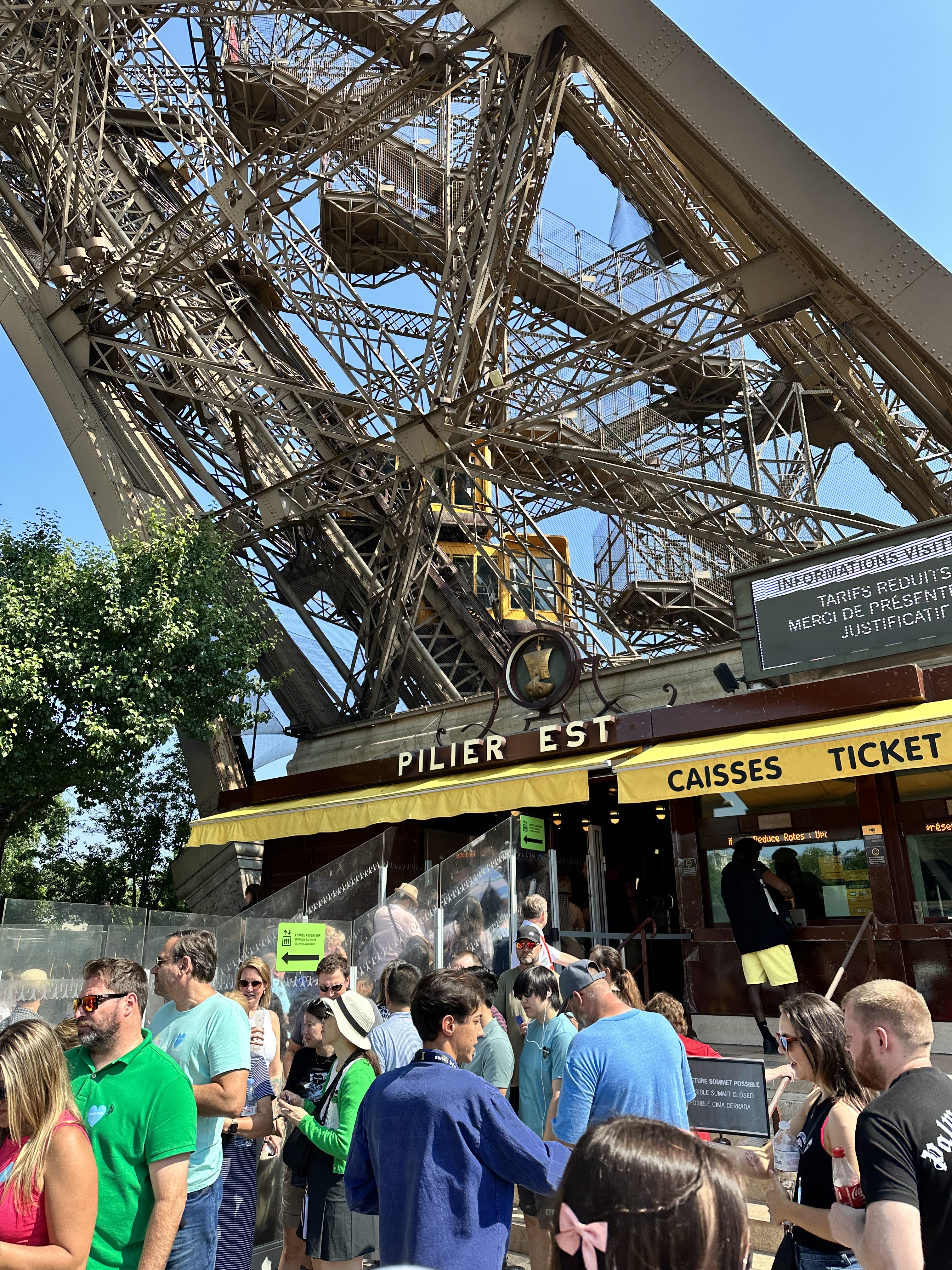 So, obviously, going to the top of the Eiffel Tower was a must. Imagine our dismay when we missed the ticket onsale! Thankfully, while timed-entry tickets are released online 60 days in advance, if they sell out for the day of your visit (or if you don’t know when you’ll be there, or want to wait for good weather) you can just show up and wait in line like the olden days. So that’s what we did.