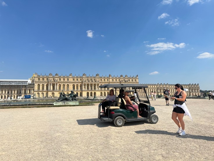 But if you really want to have some fun, you can rent a golf cart to tour the grounds! We opted for the train, as the wait for the golf cart was very long. But let me tell you, it was a hoot watching our fellow peasants drive golf carts against the backdrop of the former French Monarchy’s grandest estate.