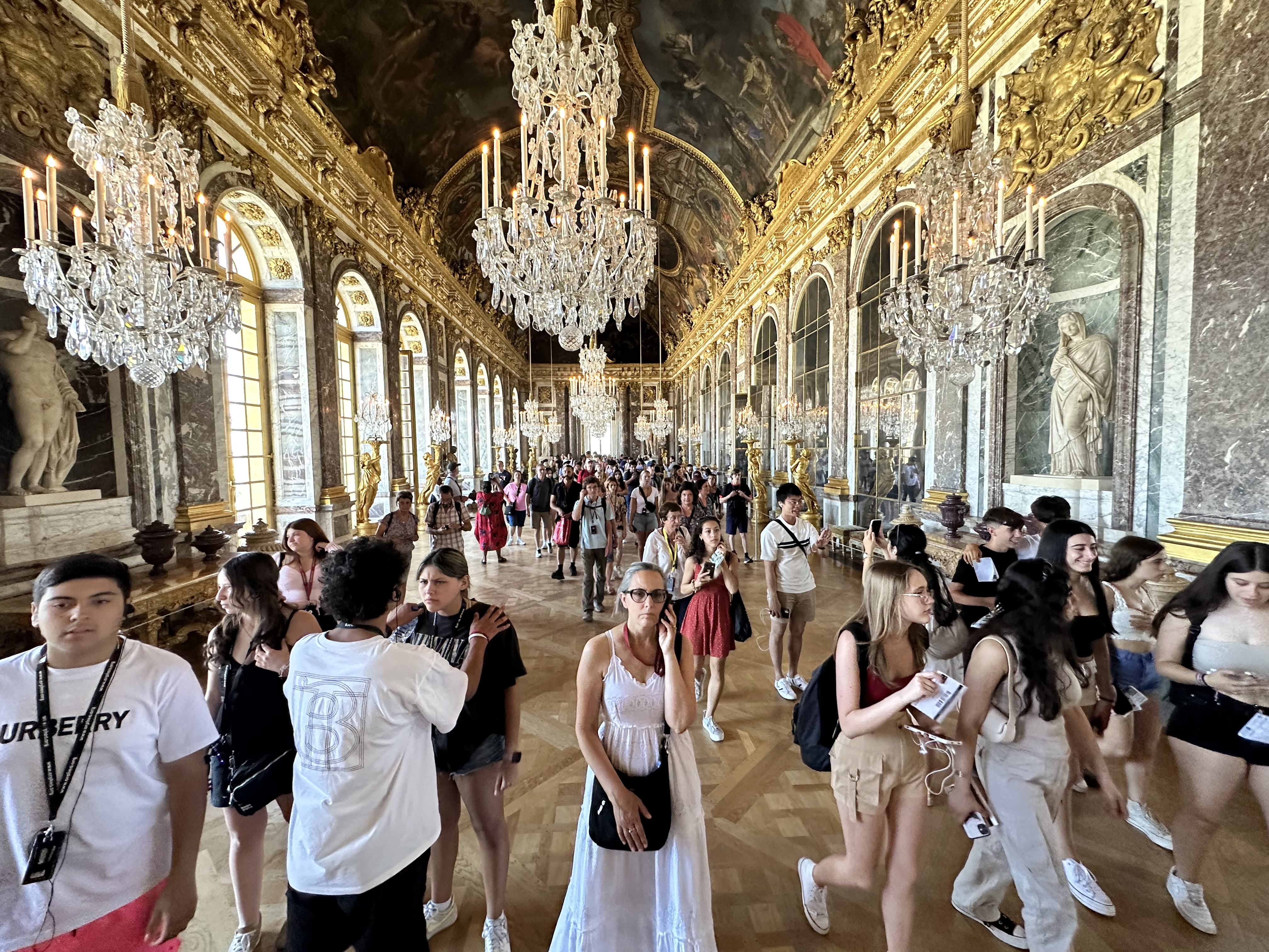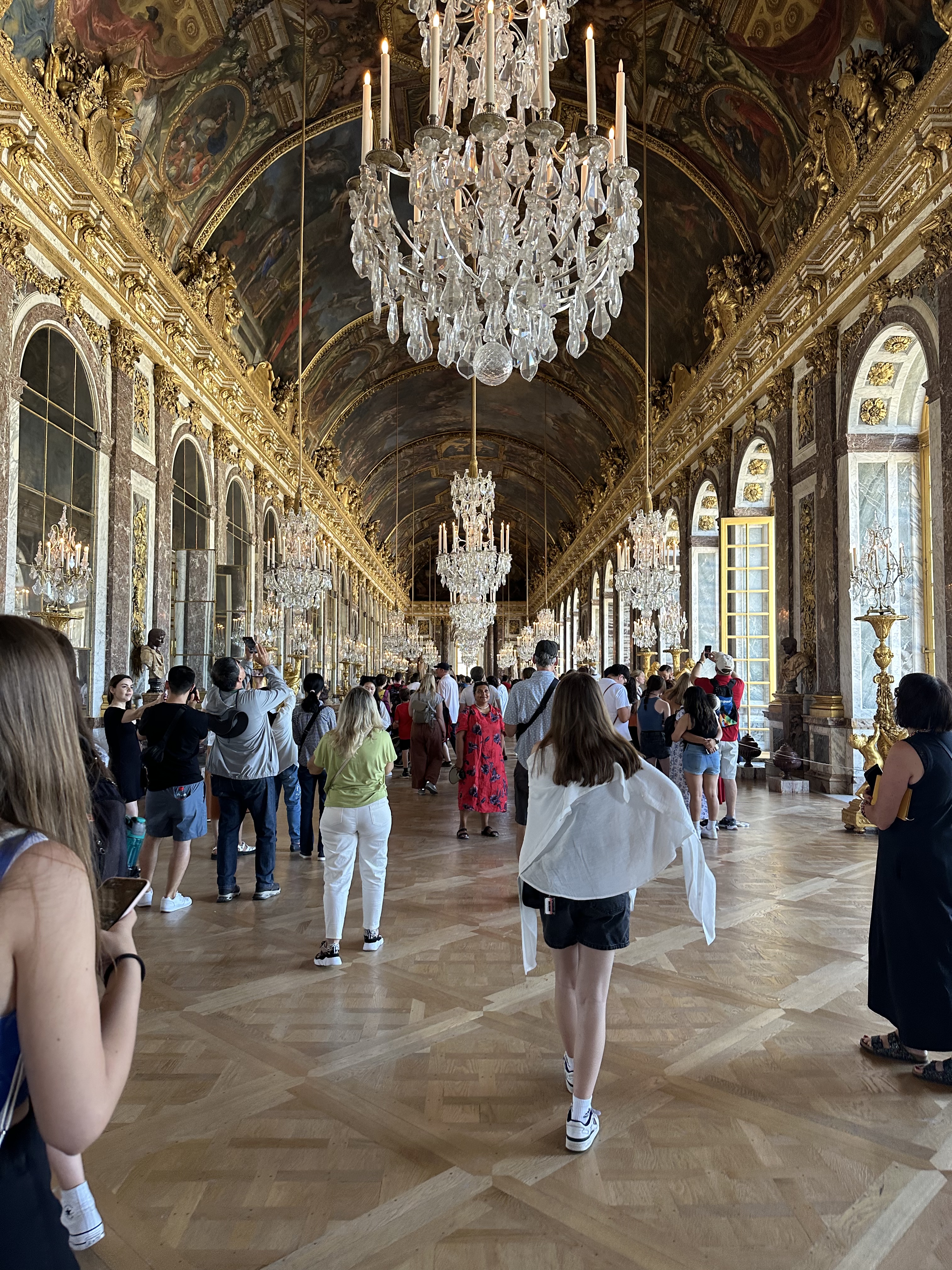 It’s difficult to describe how it feels walking up to the Palace of Versailles. Even though Americans are among the wealthiest people on the planet, we rarely see so much wealth and power concentrated in one person, one family, one place (and we certainly don’t get to visit their homes).