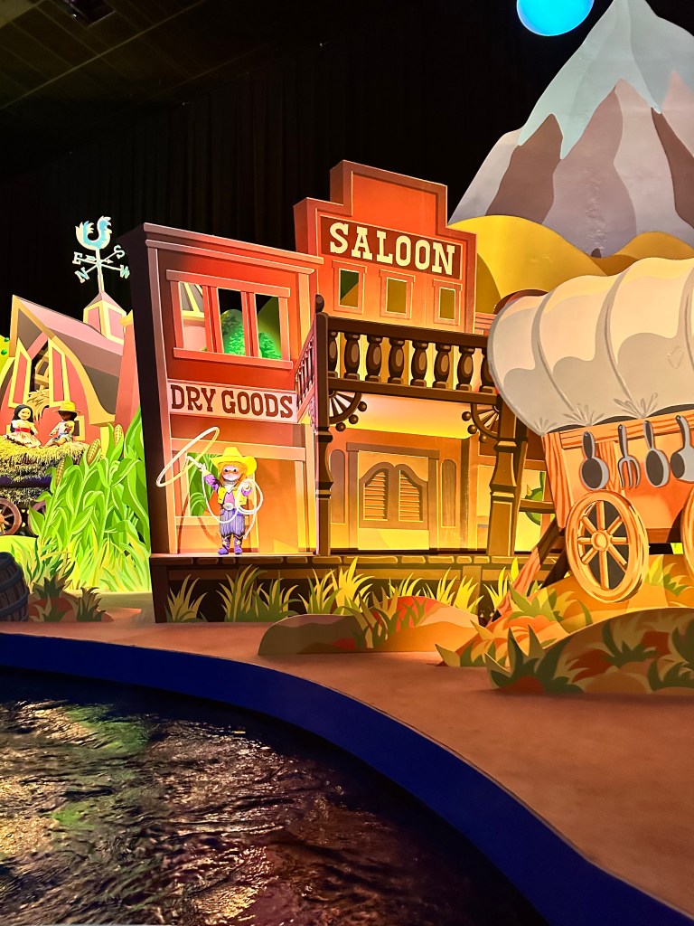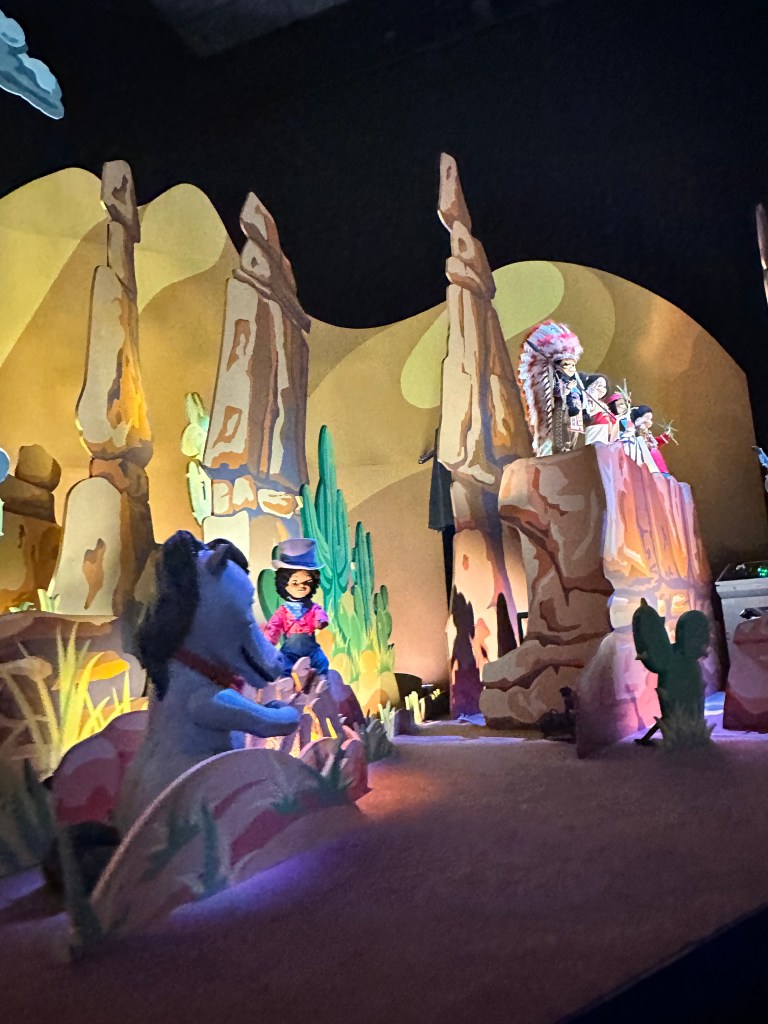 The best part of riding IASM was seeing how the Paris version portrays the USA. They featured scenes from the Wild West complete with a saloon and cowboys, plus Native Americans, Hollywood, New York City, and American football. The Paris version is also noticeably newer, cleaner, and brighter. The USA versions need some serious refreshing. Doug says he agrees with the eight star rating for this Paris version but still gives the USA version two stars!