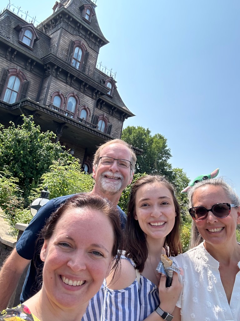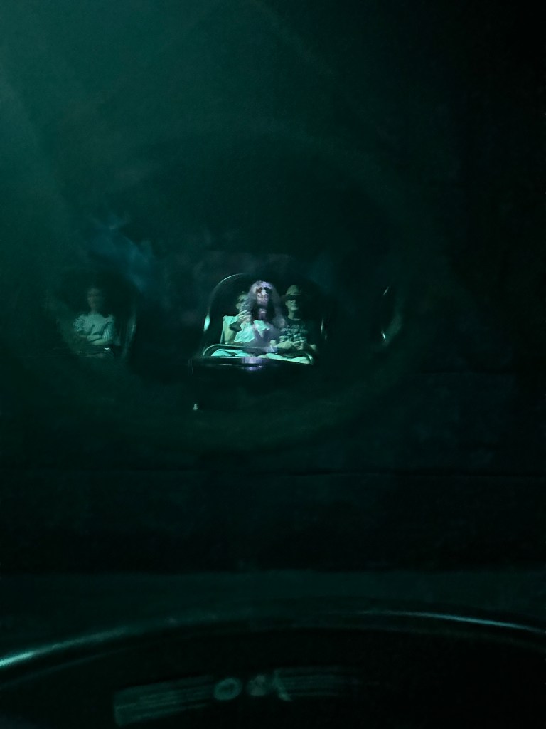 The ride itself is the same as TOT in Orlando, but with a different story. Doug and Jacquelyn both enjoyed it, but found the story and accompanying video effects creepy. Christina and I, though we’ve ridden it several times before, find that the multiple drops make us way too nauseous. We had a nice time resting in yet another patch of grass and we even FaceTimed my parents!