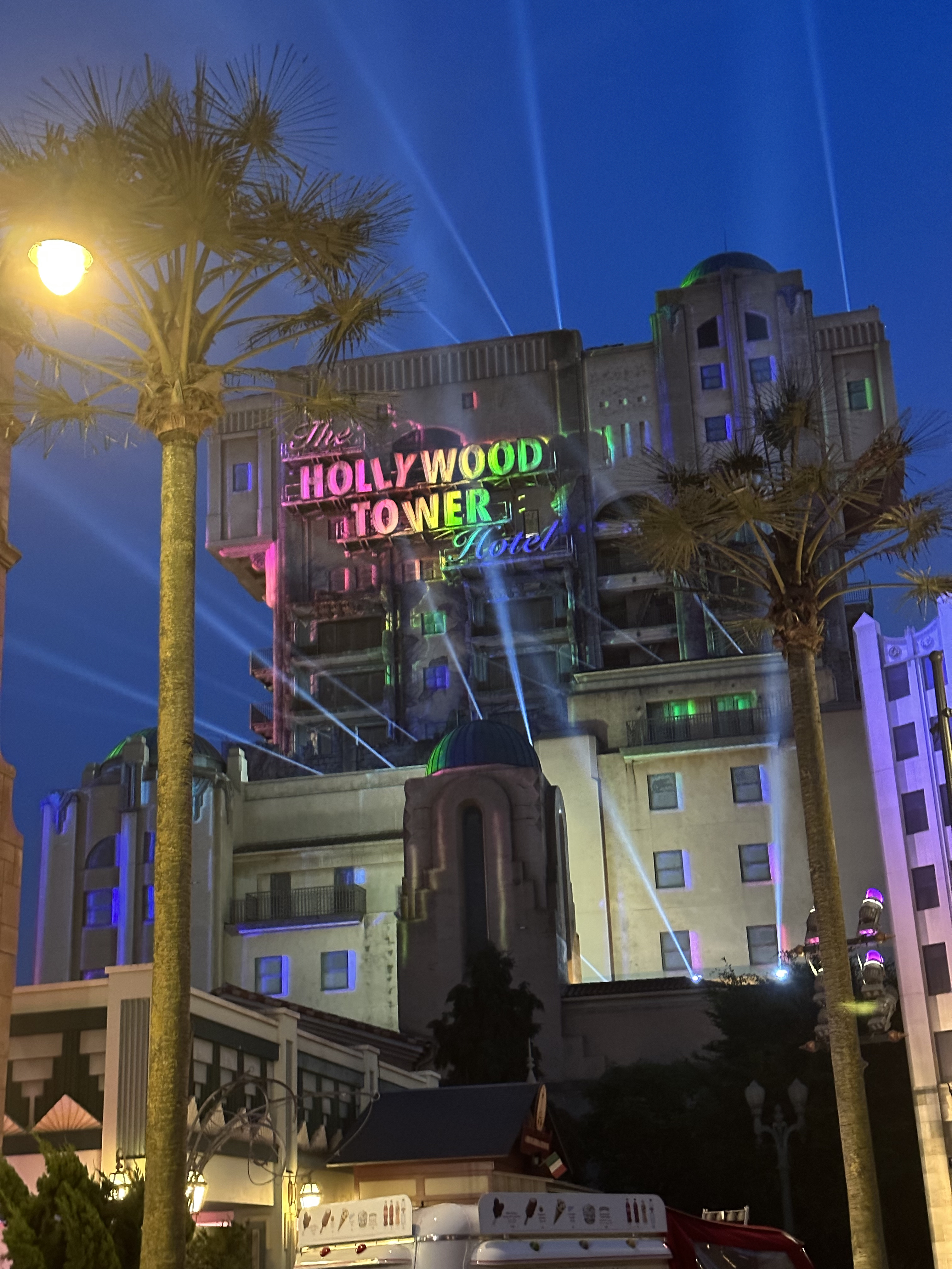 We spent a few hours in the park, and tracked down some slushies for a mid-day snack. Then we went back to our hotel in the late afternoon when we assumed our room was ready (they said they’d text us but they never did). After we brought our luggage to the room and got that settled, we headed to Walt Disney Studios Park for dinner and more rides.