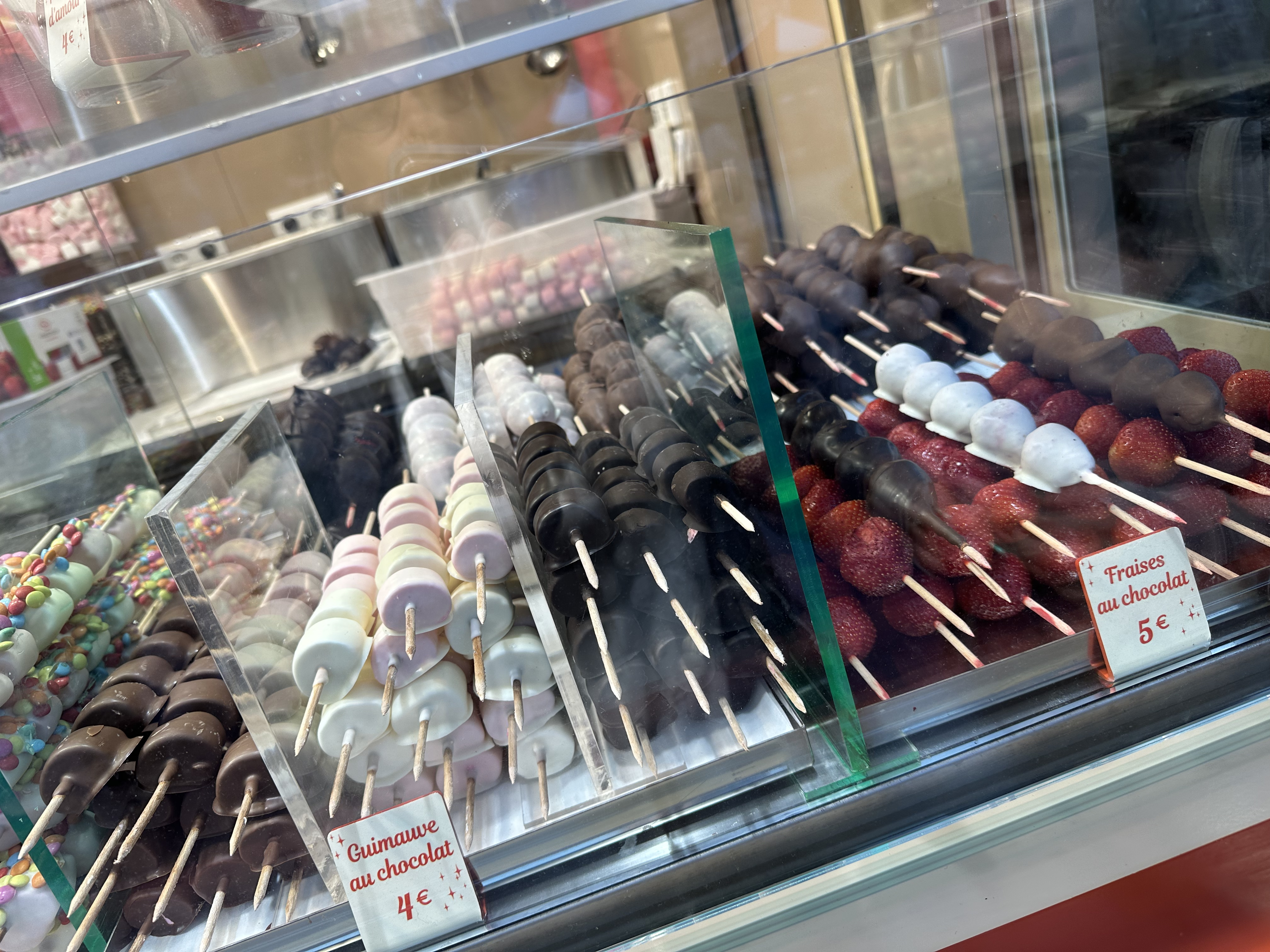 All the rides, many of the restaurants, and some of the stores were closed after the projection show, so most everyone piles out of the park in one big mob. We opted to stay on main street for a while as the crowds thinned before heading back to the hotel. As I mentioned earlier, we stopped for those strawberry skewers which just delighted me in the most unexpected way!