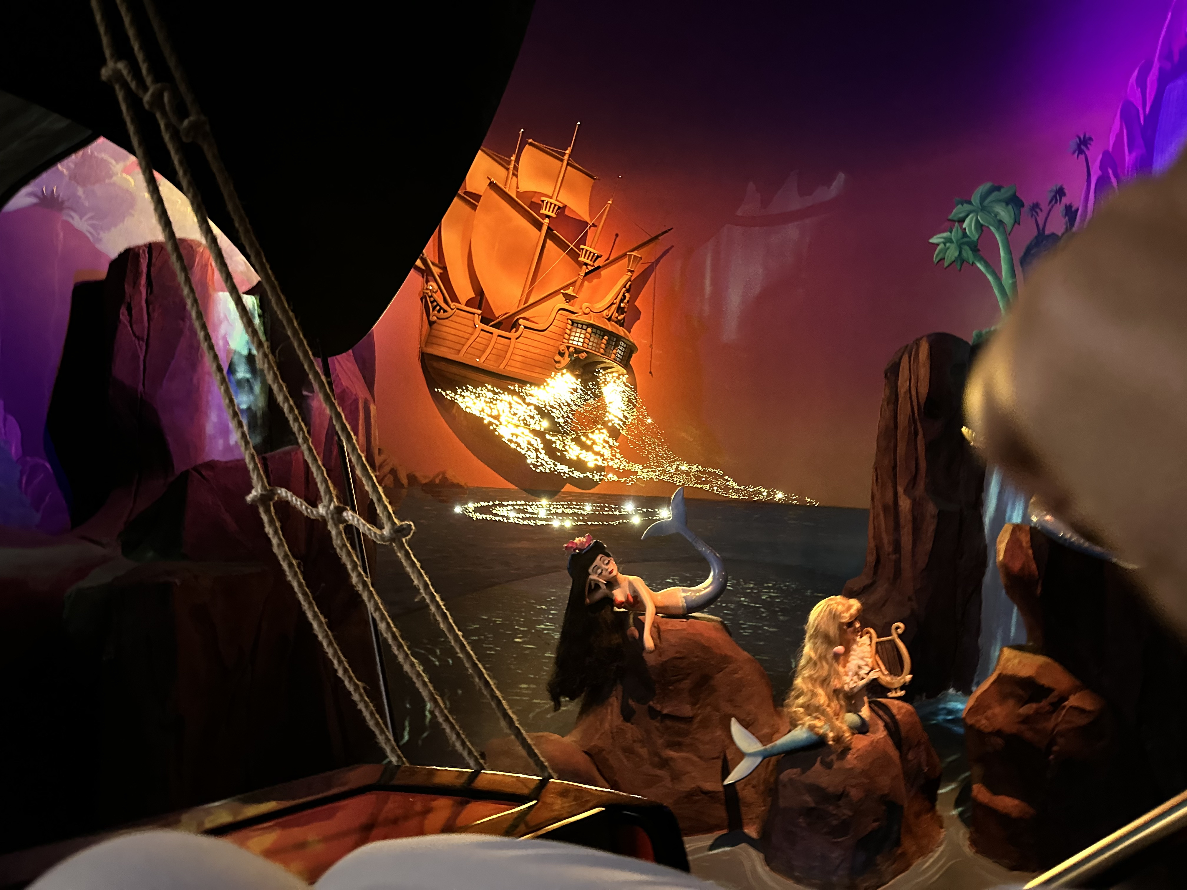 Of course we all rode this and it was indeed very similar to the two versions in the USA except for a few artistic differences, and it was also newer and brighter, so just a more beautiful experience. Always a family favorite. Very chill ride but could bother people with a significant fear of heights. Below is a scene from the end of the ride, and we love how the pixie dust lights up and sparkles!