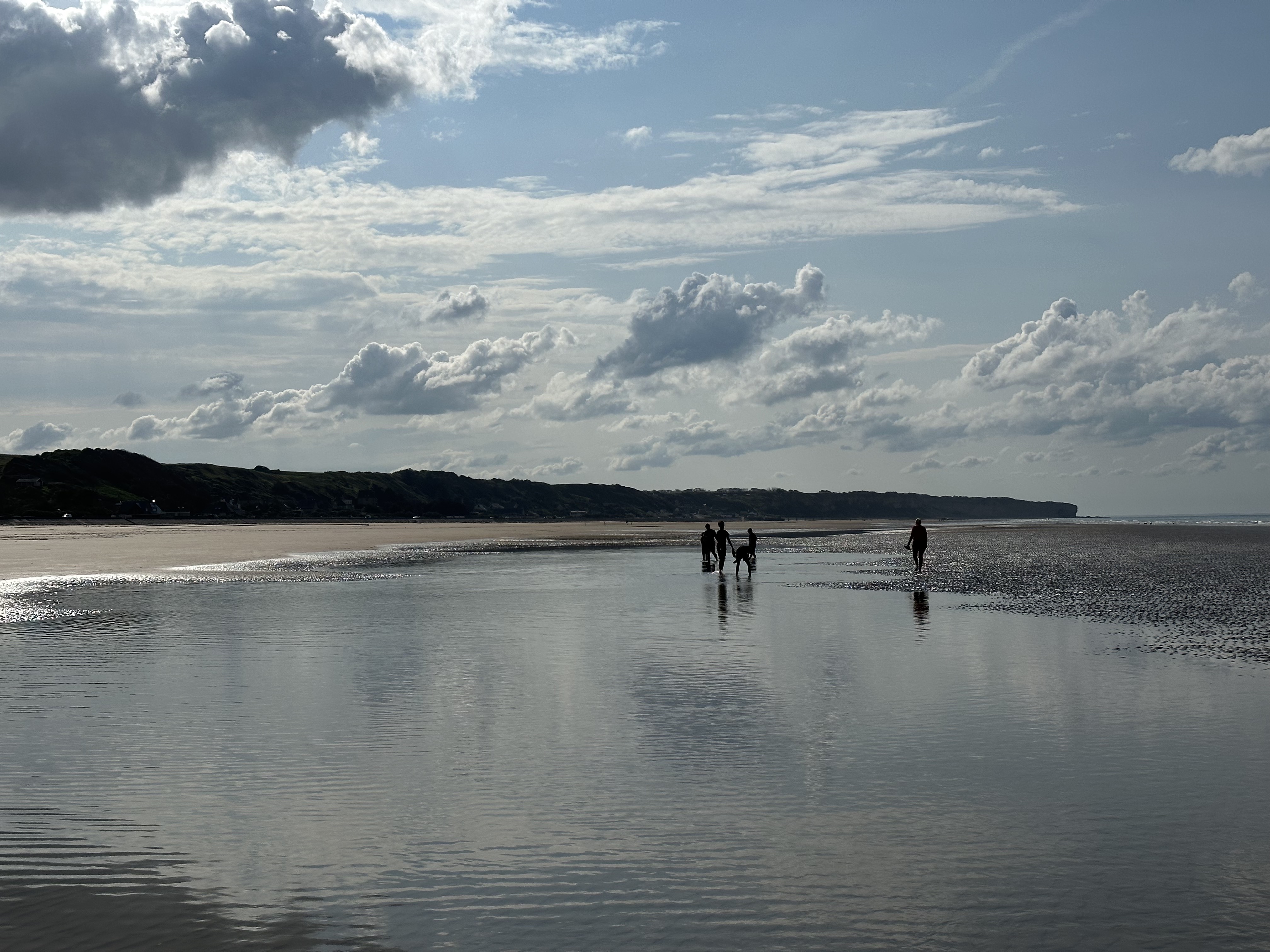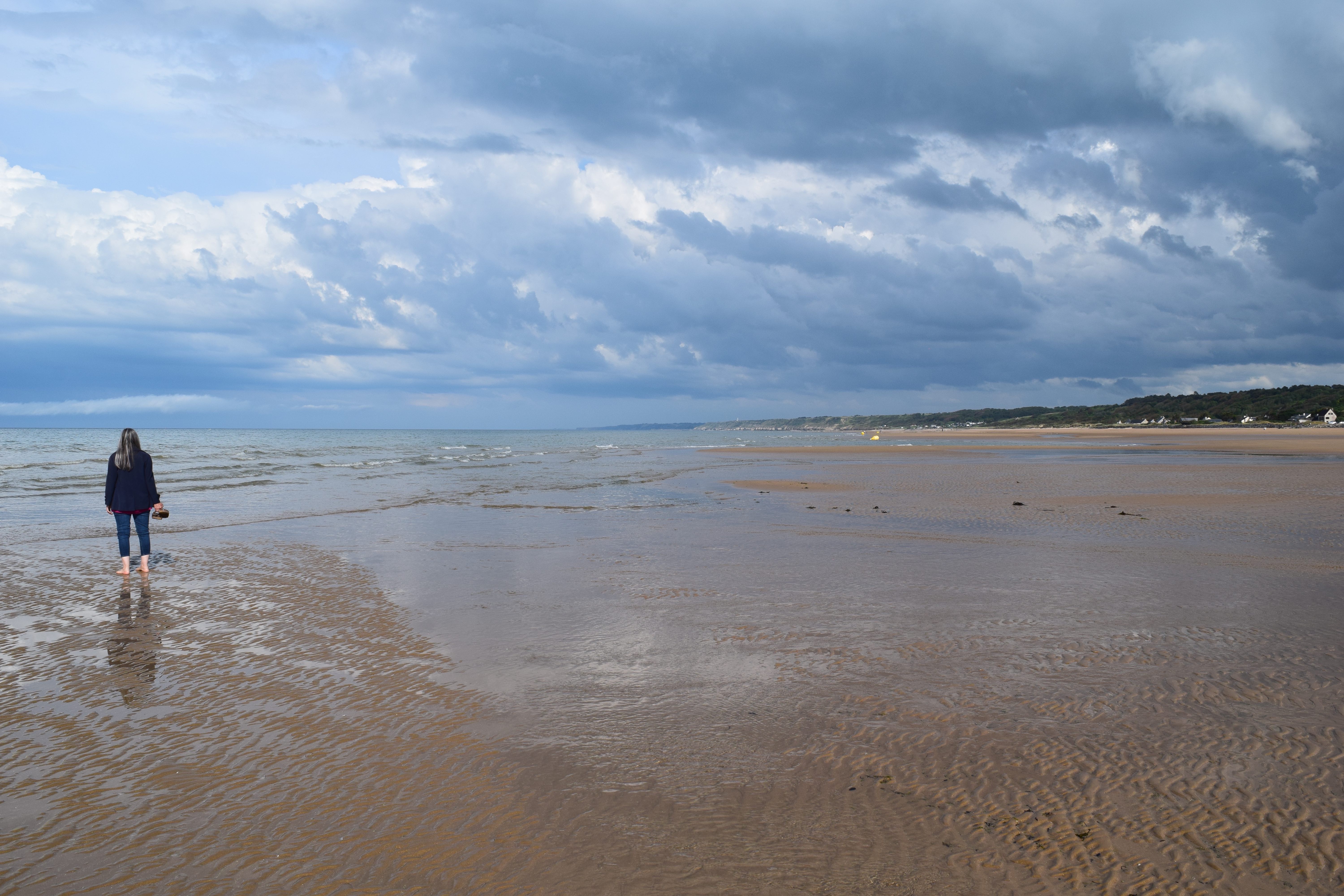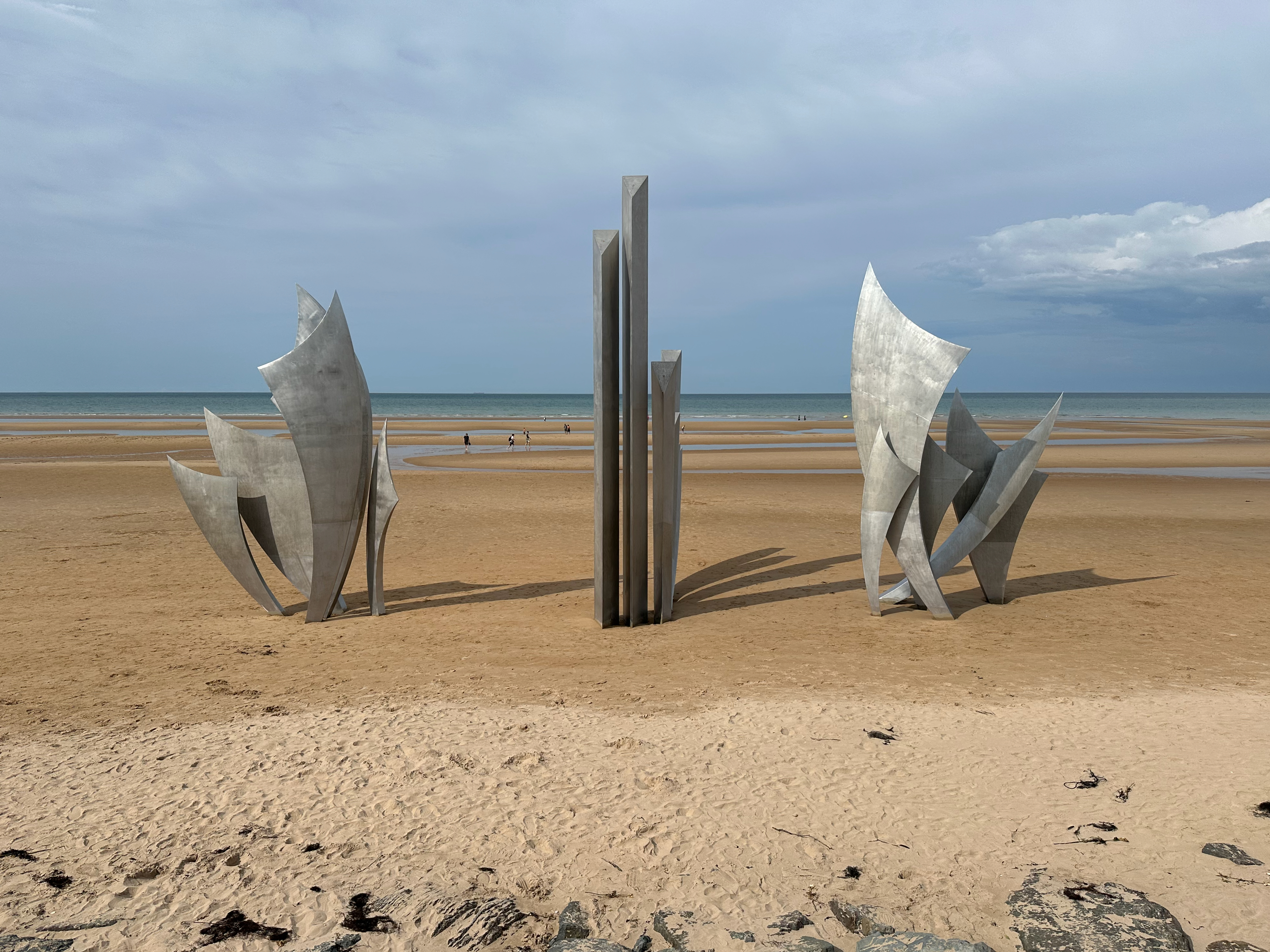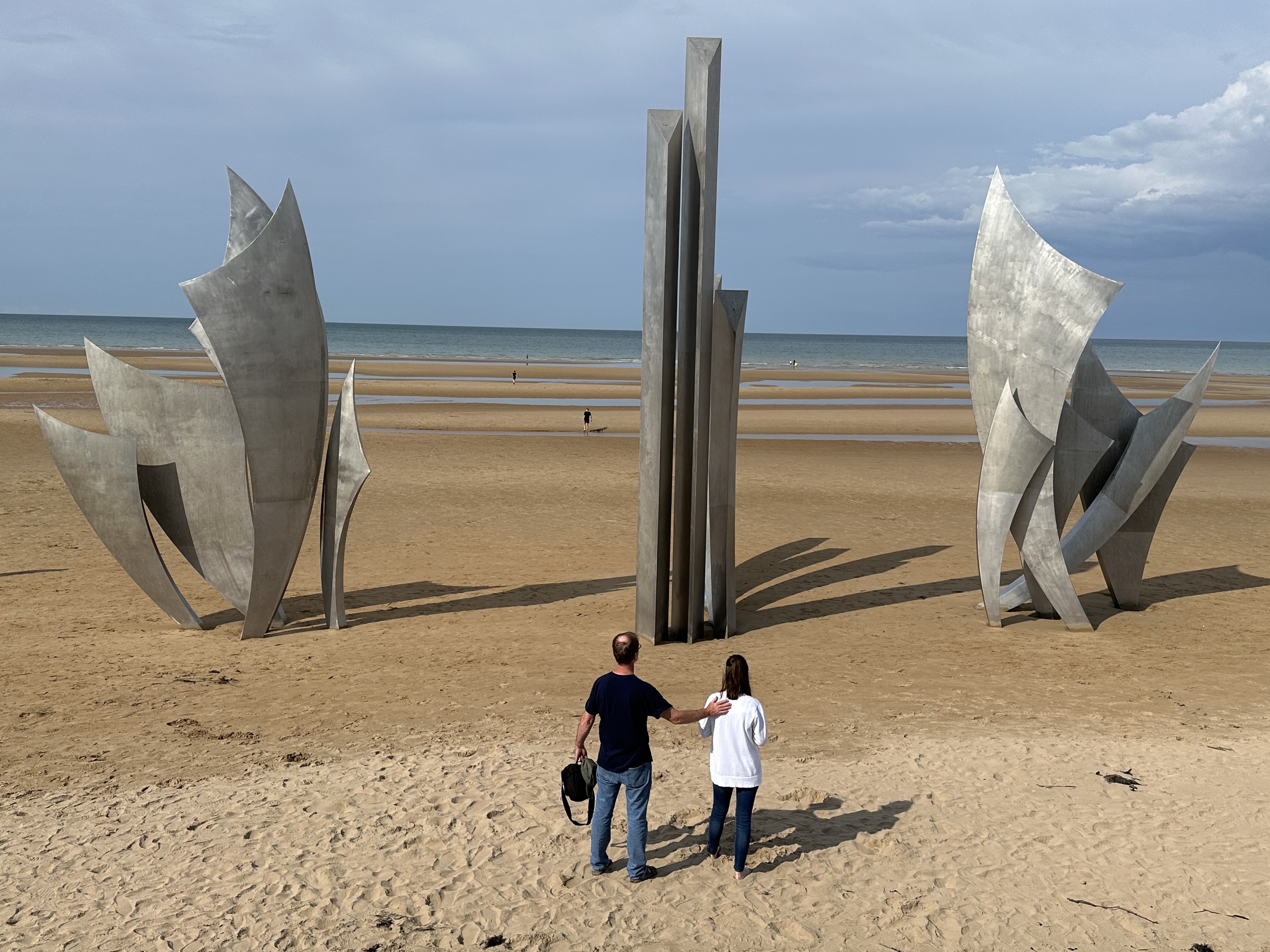In the early evening, while Jacquelyn rested at the Airbnb, Doug, Christina and I went back to Omaha Beach. We wanted to visit at low tide and see the Les Braves Memorial Monument, which is nearer to the center of the beach than the area we visited in the morning.
