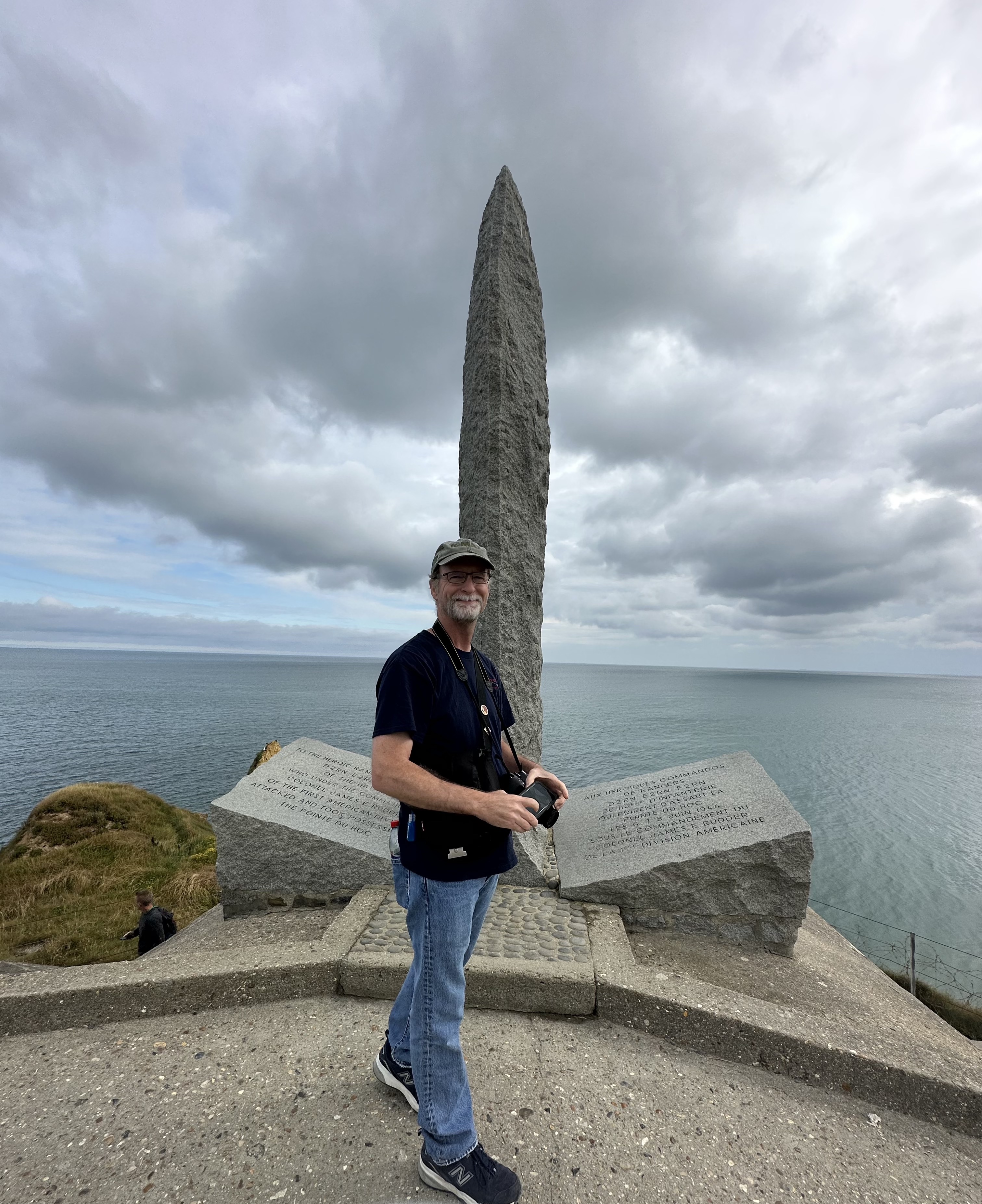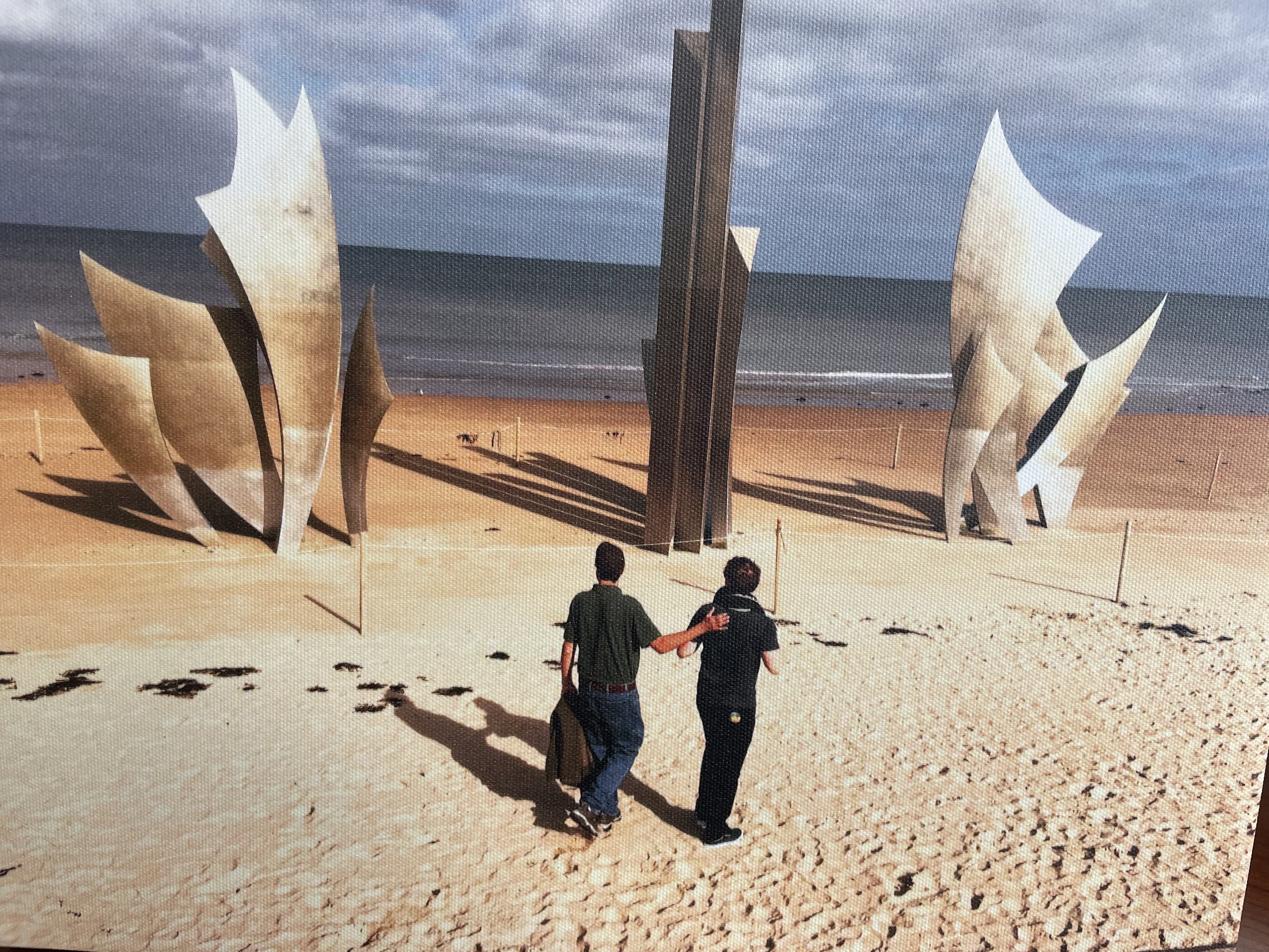 Doug’s colleague Jim, who I mentioned earlier, has a photo in his office of himself and his son at the Les Braves Memorial. In May, Doug commented on the photo and Jim said “If you ever get the chance, you really need to go to the beaches of Normandy.” At that point, Jim didn’t know we already had a trip planned. So Doug said “Jim, since you’ve made the recommendation, I will go in the next 30 days and I will have a photo taken right there in front of the memorial at Omaha Beach.”