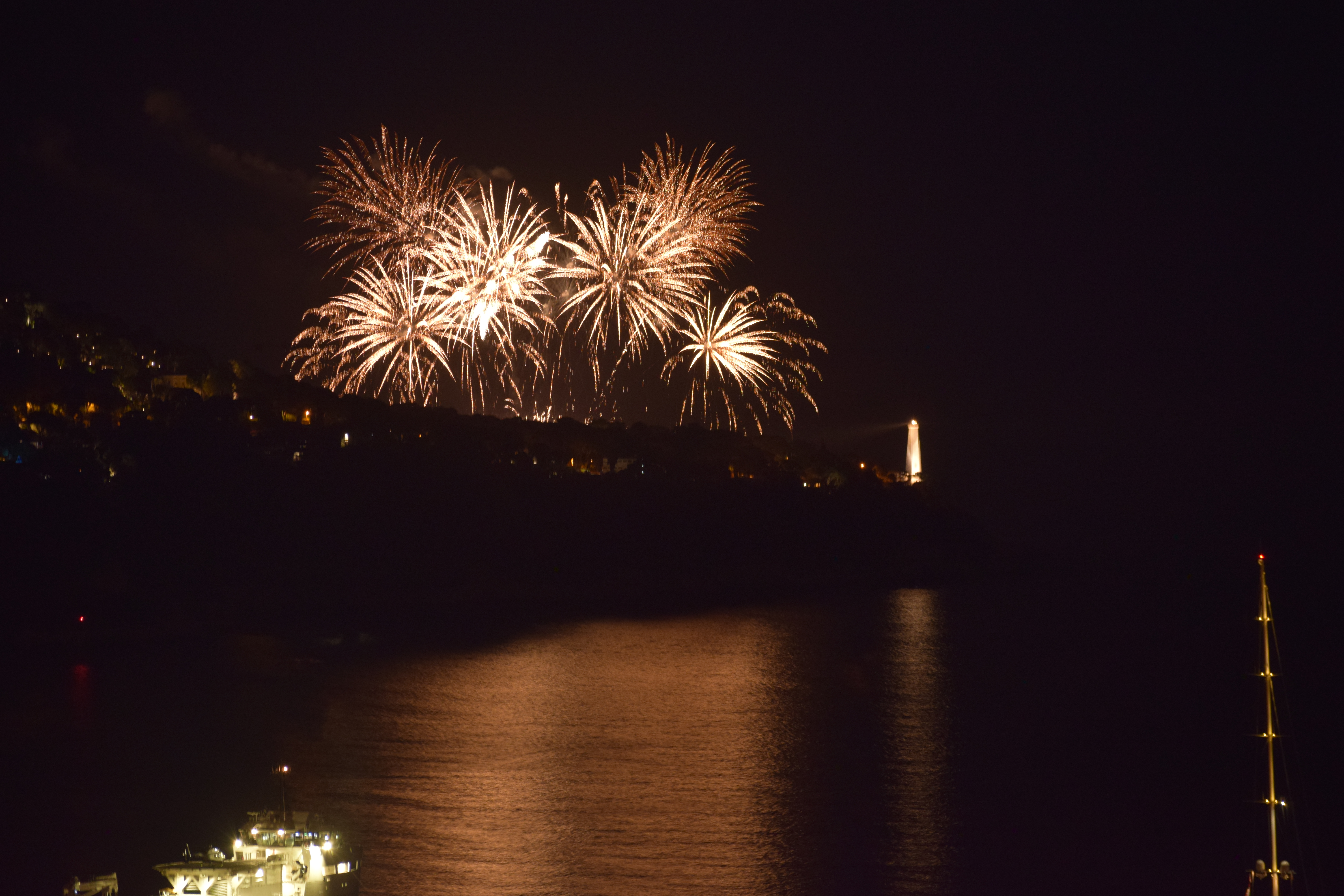 Walking back up the hill to our apartment was a trek but we took our time, stopping at a little mart to get some bottled water and snacks. At night we enjoyed the view from our deck, which included fireworks out on the peninsula.