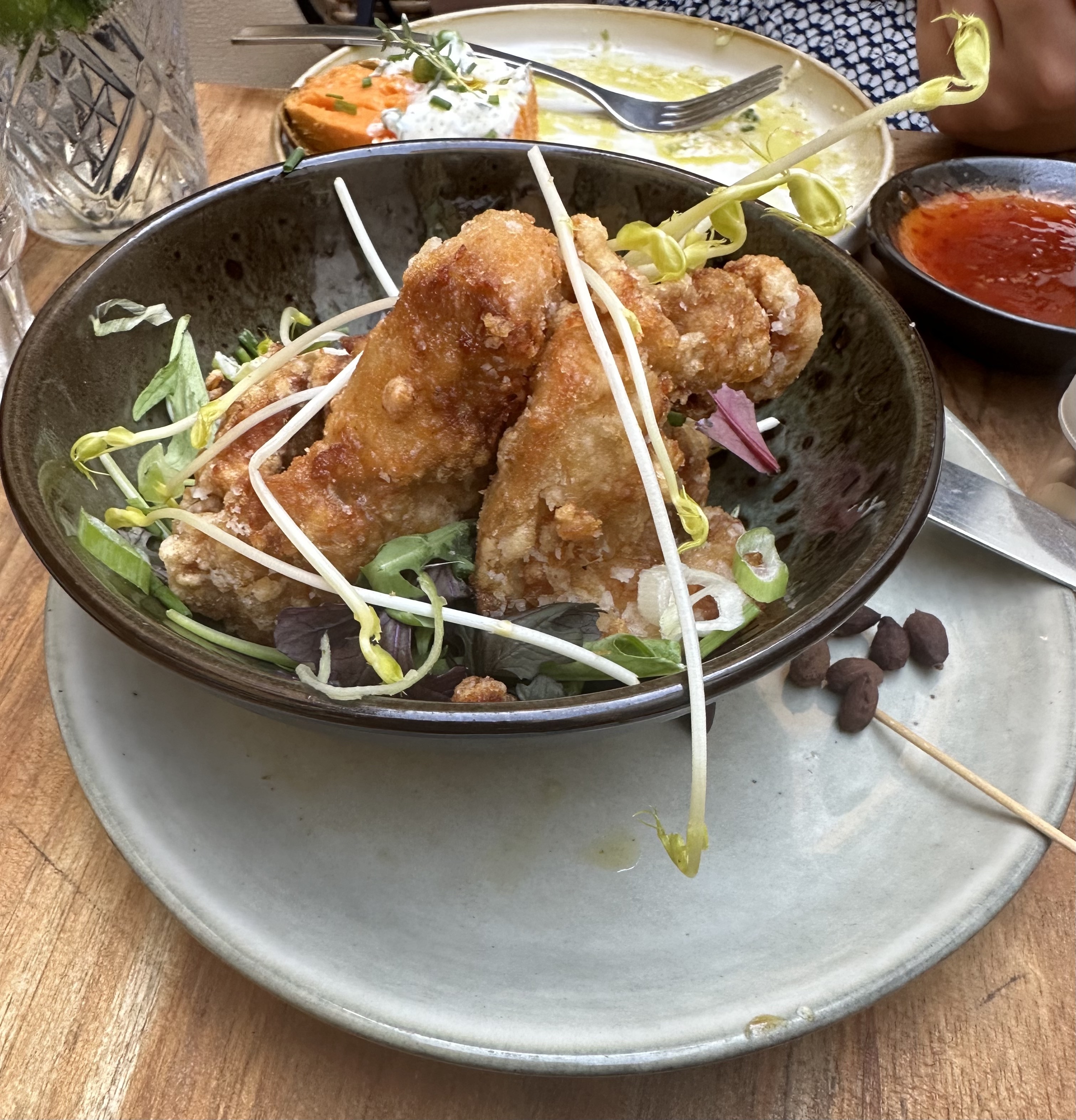 Cave Nature is a small restaurant surrounded by tall buildings, offering only outdoor seating. The food was fresh and made to order, so we had plenty of gluten-free and corn-free options. And the service was excellent. We loved it so much we went back there the next night!