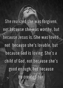 Here’s why: Much about the way this is worded implies that “she” (a symbolic “she” with which all Christian women are invited to identify) “she” is not lovable, is not worthy of forgiveness, and is not good enough to be a child of God. And people…especially women…often accept that as truth.