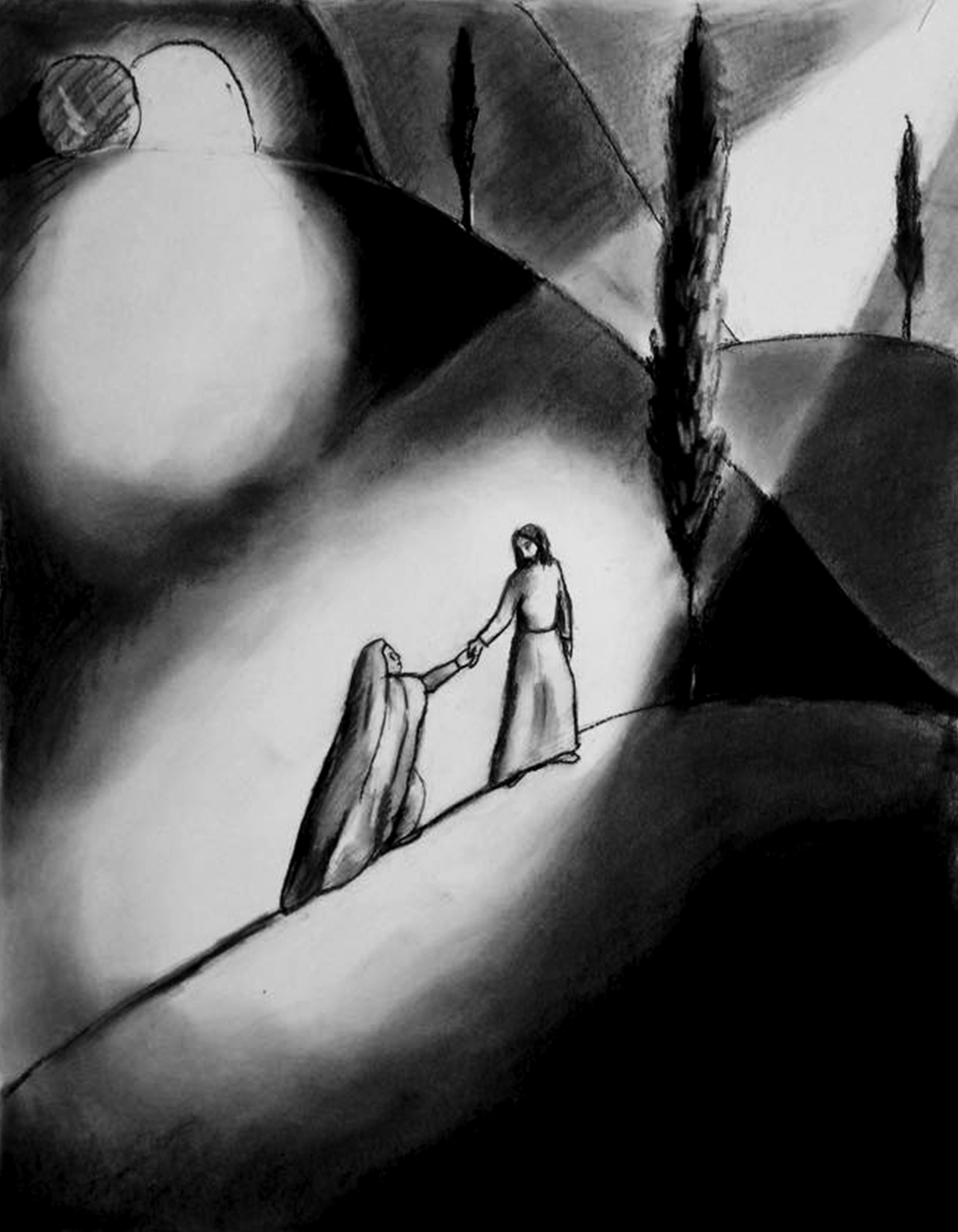 **Digital photographs of original charcoal drawings by Kate Tortland. These two drawings are part of her 14-piece Stations of the Cross collection which depicts Jesus’ journey from the Garden of Gethsemane to His resurrection. The collection is on display each year for Good Friday at Wintonbury Church; and an accompanying booklet with photos of the artwork, scripture, and meditations written by church members is provided for guests.