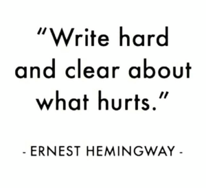 I’m no Ernest Hemingway, but I’ve etched my pain all over the pages of this blog. Hard and clear. Ugly. Scary-to-look-at. And oh, so very uncomfortable. For you. And for me.